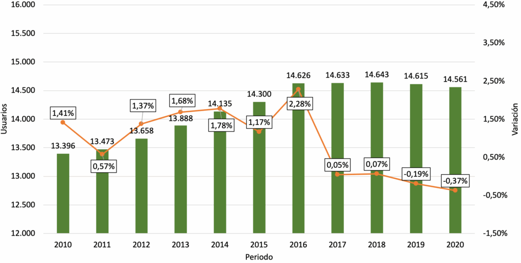 Evolución de la Cantidad de usuarios residenciales La Rioja 2010 - 2020